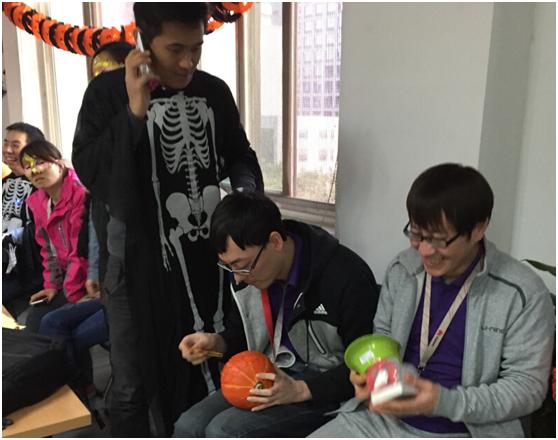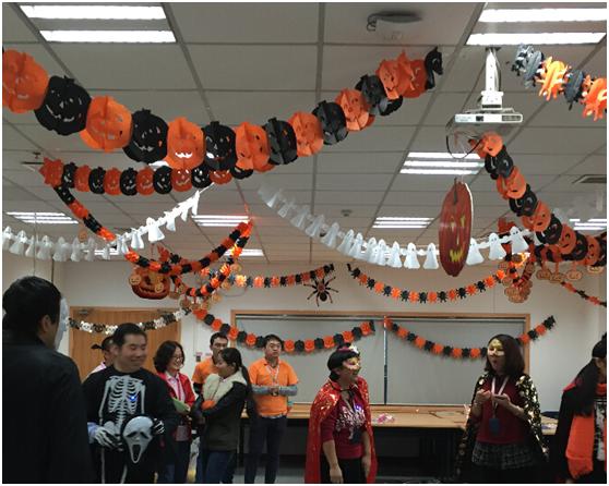 2015年10月31日晚17点,朗文国际英语与华为英语协会共同举办的万圣节活动在华为公司热烈开场。华为哥哥部门的员工们绞尽脑汁,设计出了充满万圣节诡异气氛的“鬼屋”,纱帘,蜘蛛,骷髅装点了整个“鬼屋”,引来体验者尖叫连连。