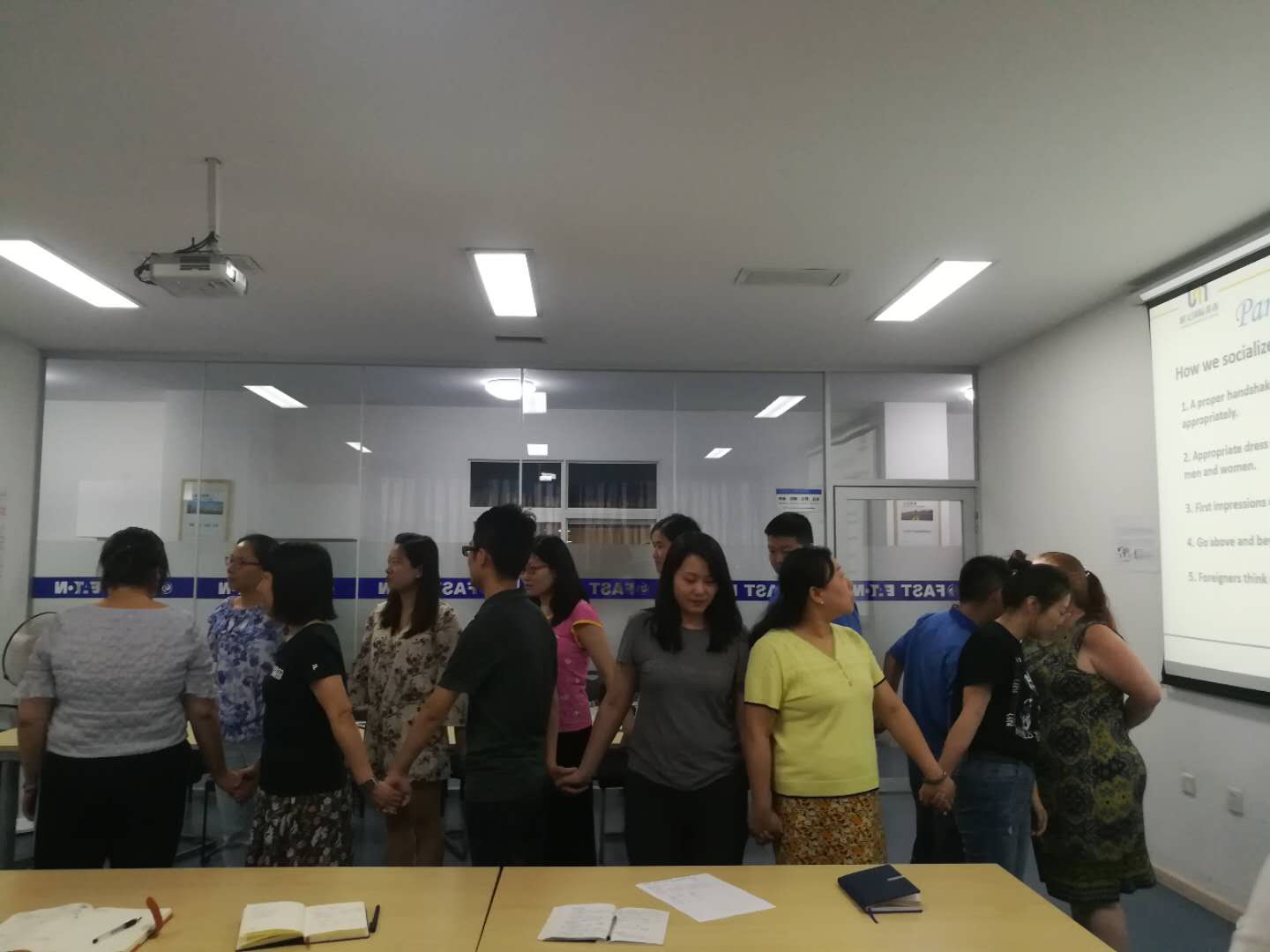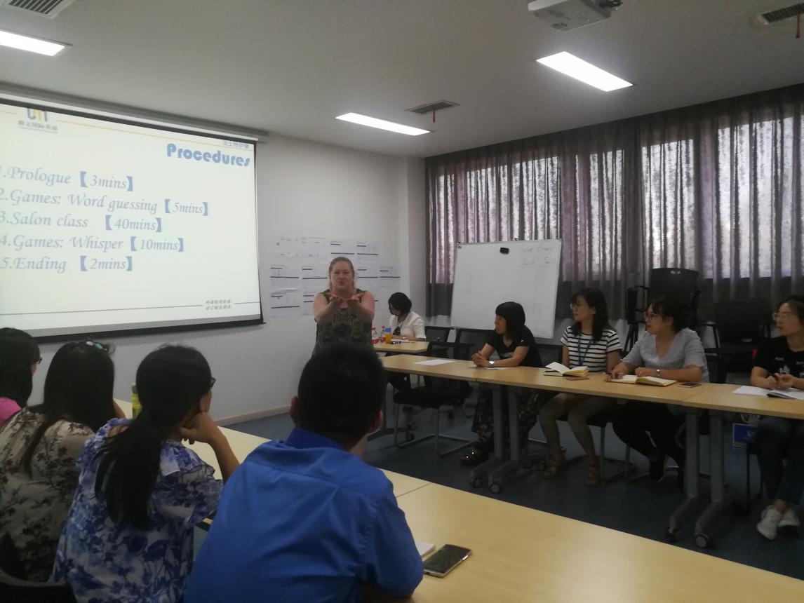 首先由西安朗文国际英语代表Linda女士致开场词。随后来自美国的外教老师Kate将法士特伊顿(西安)12位经理人平均分为A、B两组,首先进行了两轮”心有灵犀’’的小游戏,旨在帮助大家先热热身,进入用英文思维和交流的状态。