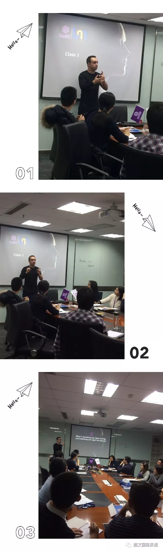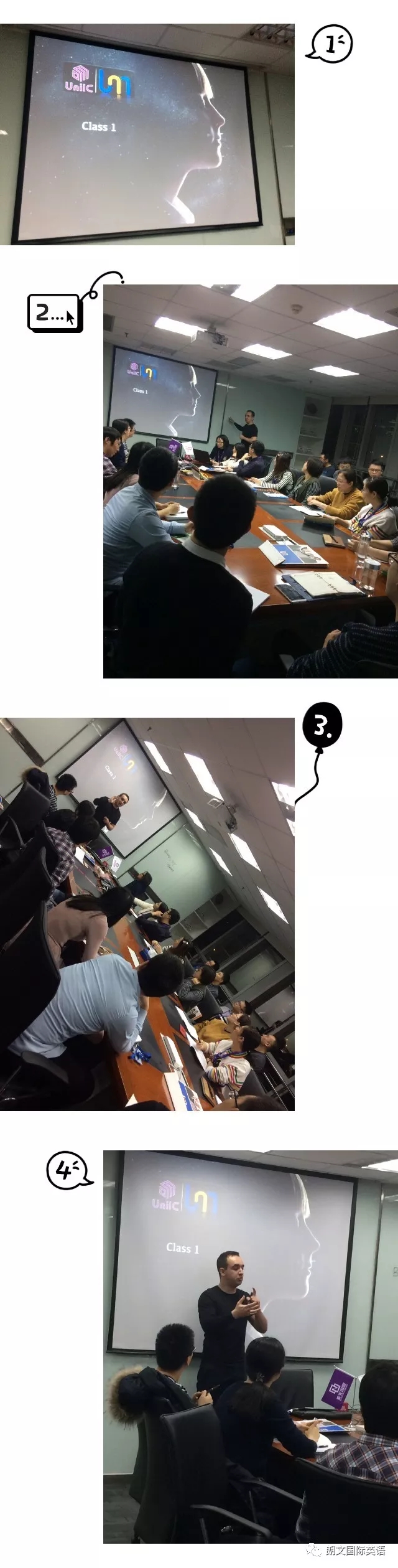 本次开班分为中教班和外教班,Kiki老师和Bruno老师都非常具有亲和力,分别设置了热身的小游戏和吸引人的小视频,让学员们快速地进入了英语学习状态!